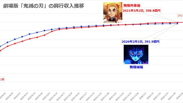 [無限城編-無限列車編 比較グラフ]劇場版「鬼滅の刃」興行収入推移[2026年最新]