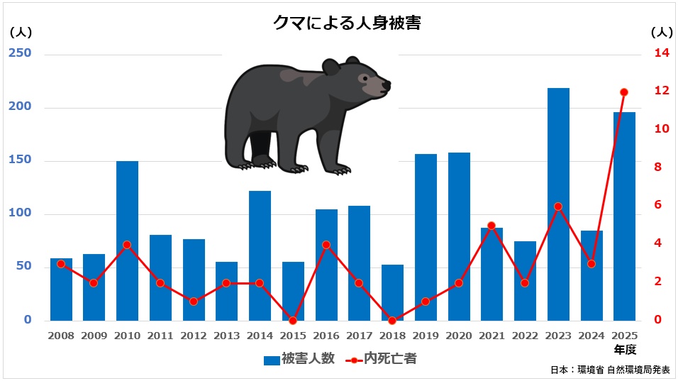 日本のクマによる人身被害推移グラフ