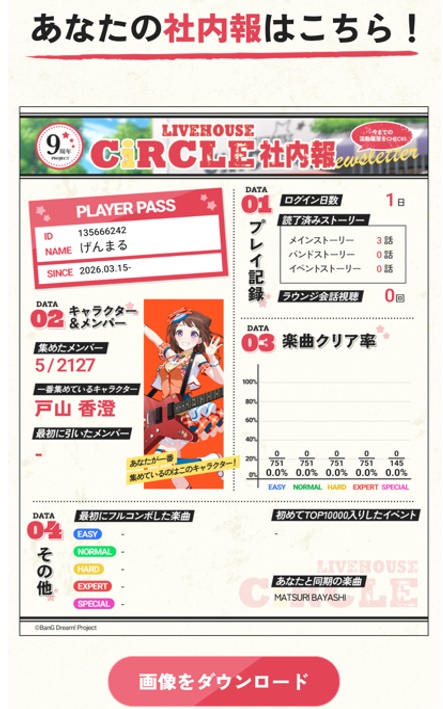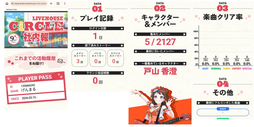 この特設サイトでは、ゲーム内の自身のデータを以下のような項目で