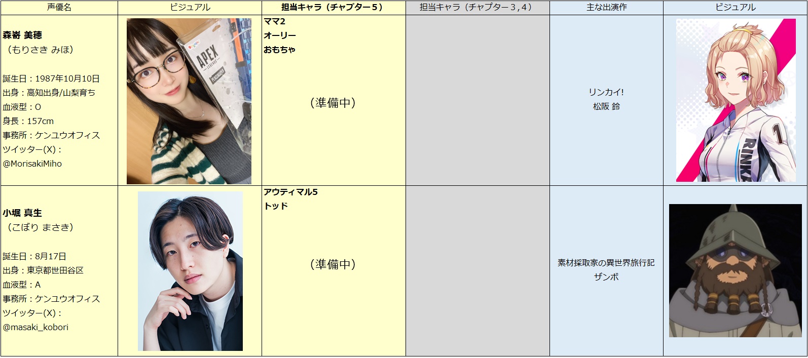 キャラ画像は順次更新します!