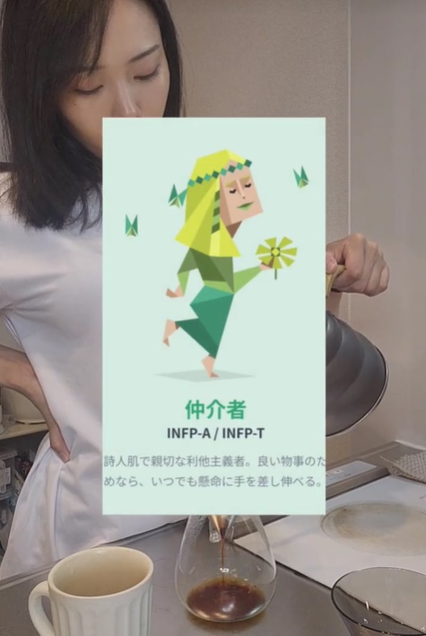 - MBTI(性格タイプ):INFP-T(仲介者)