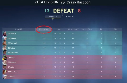 ACSとは、Avarage Combat Score を略してACSといいます。