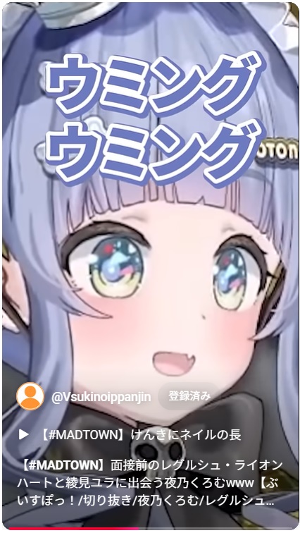 夜乃さんの相槌が「うむ(yesの意味)」+ing→うみんぐ